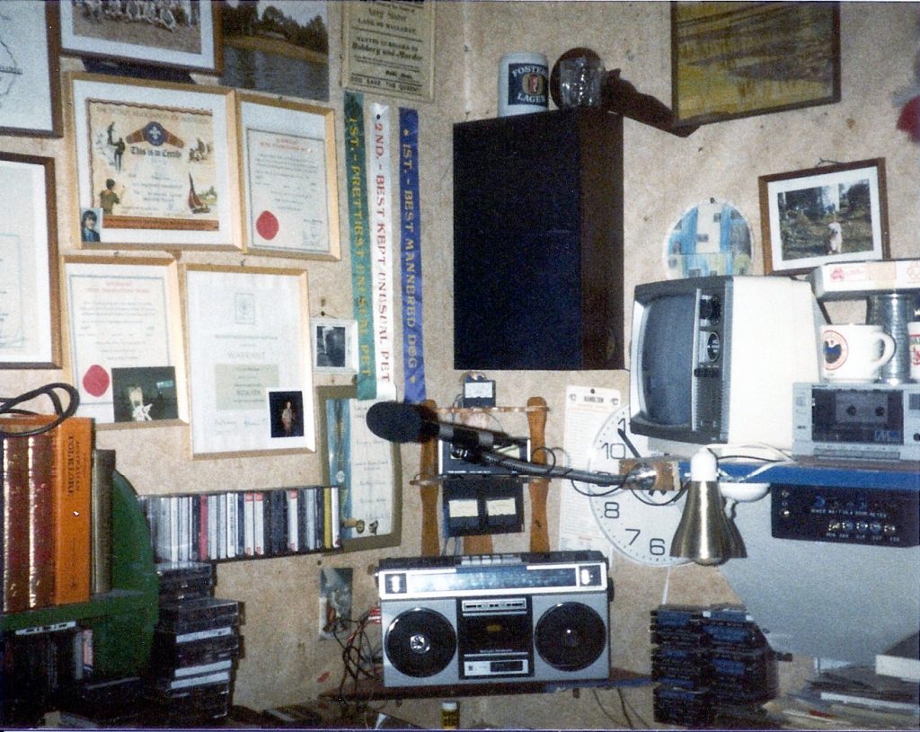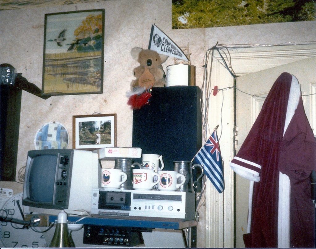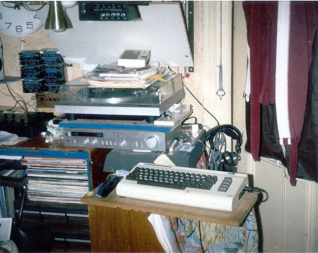 I’d guess this would be 1987 or thereabouts. The video at the bottom pre-dates the photos. You’ll see in the video the old 3 in 1 stereo – that’s tape deck, record player and radio, and in the photo’s there is an amp and a record player sitting on top of it. The photos also have a little mixing desk instead of the old switches I created myself from light switches attached to a piece of plywood.